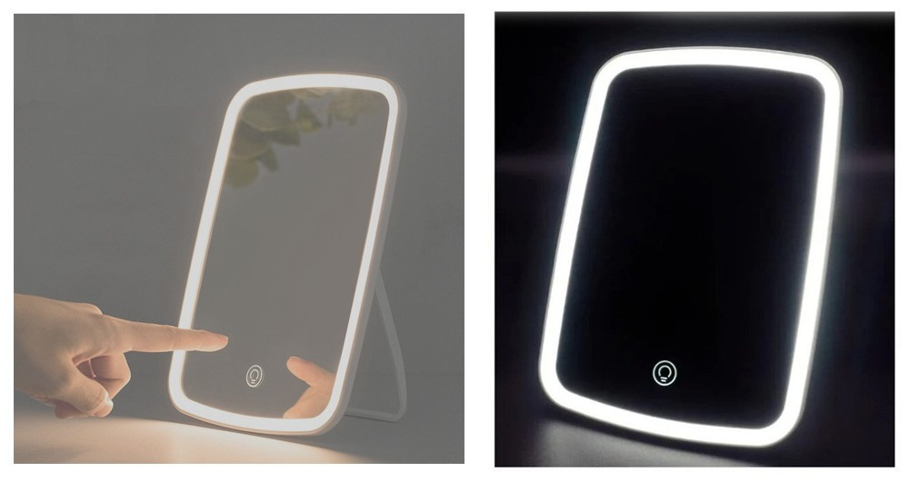 Praktikus sminktükör fehér LED világítással és stabil állvánnyal