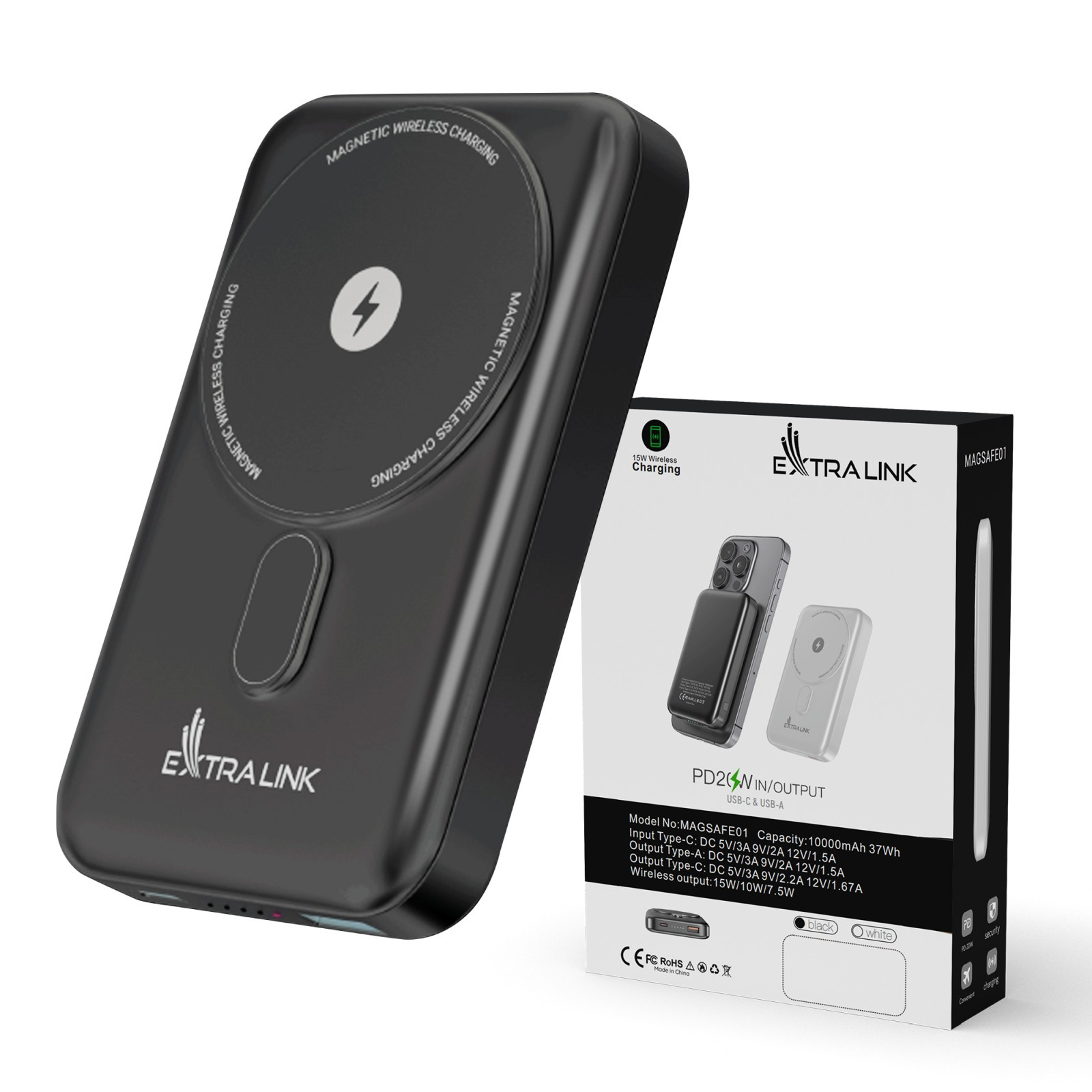 Az Extralink 10000mAh szürke MagSafe kompatibilis powerbank ideális választás azoknak, akik biztonságos és gyors vezeték nélküli töltést keresnek útközben. A 38,5Wh kapacitás elegendő ahhoz, hogy okostelefonját, fülhallgatóját vagy más hordozható eszközét többször is feltöltse anélkül, hogy konnektort kellene keresnie. Kompakt mérete és mágneses rögzítése révén kényelmesen használható akár közben is, amíg a telefon a kezében van.